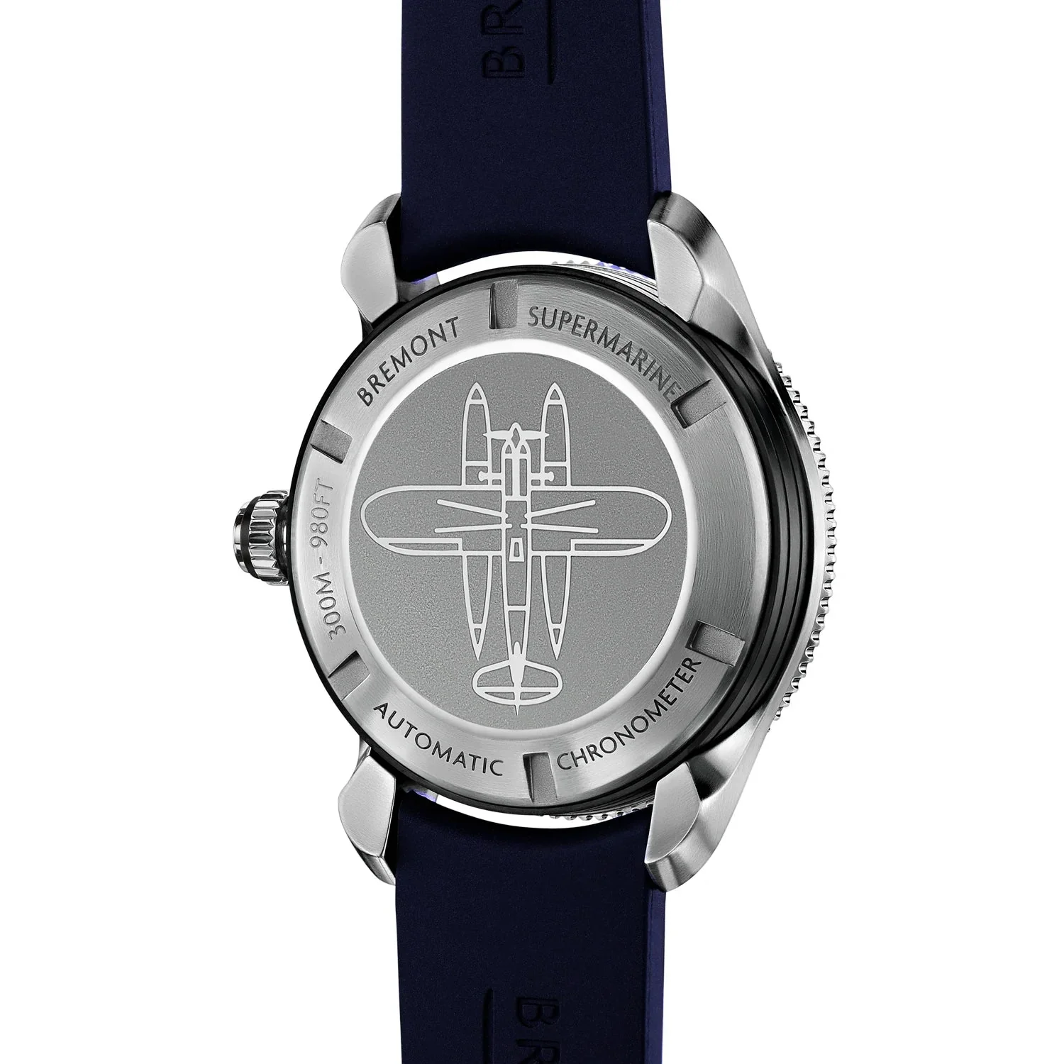 Every Bremont Supermarine Type 300 is chronometer rated and houses a beautifully finished BE-92AE automatic movement. There will be two variations of the Type 300, and one sister model, the Type 301. Of the two Type 300s, the Type 300/BK has a black dial and ceramic bezel insert, and the Type 300/BL a blue dial and ceramic bezel insert.